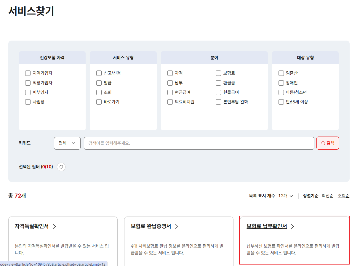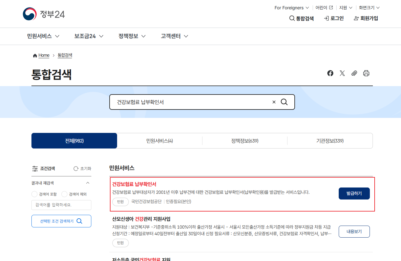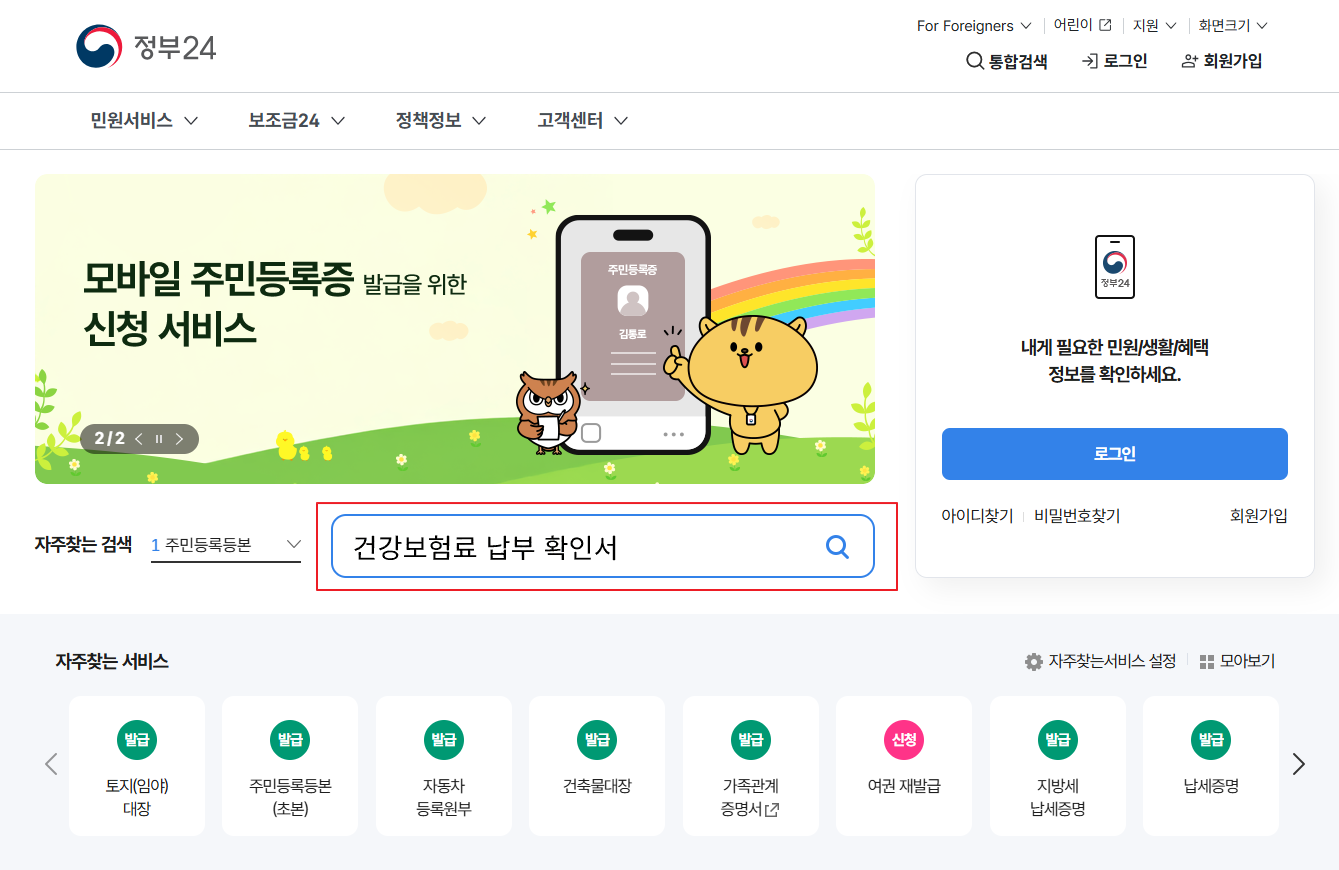 - 검색창에 ‘건강보험료 납부확인서’ 입력