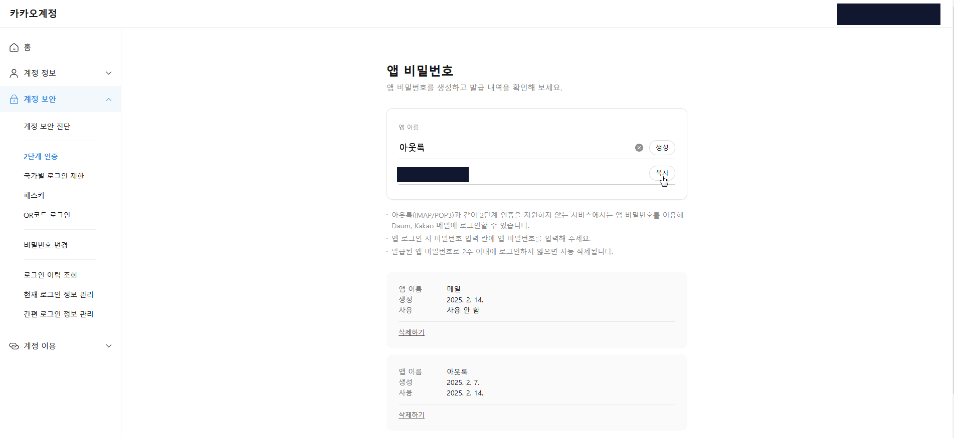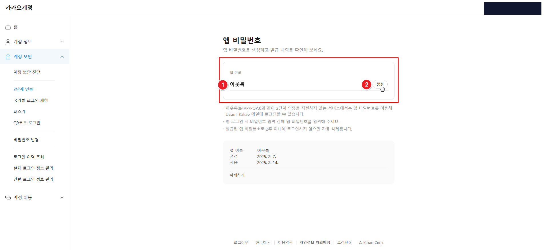 네이버·다음 메일에서 2단계 인증  비밀번호 생성