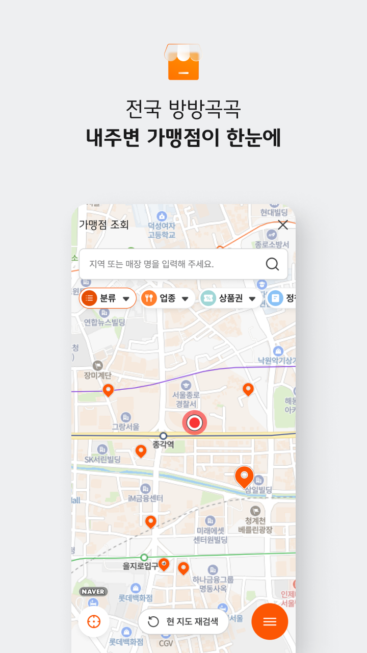 - 앱 실행 후 ‘가맹점 찾기’ 메뉴 선택