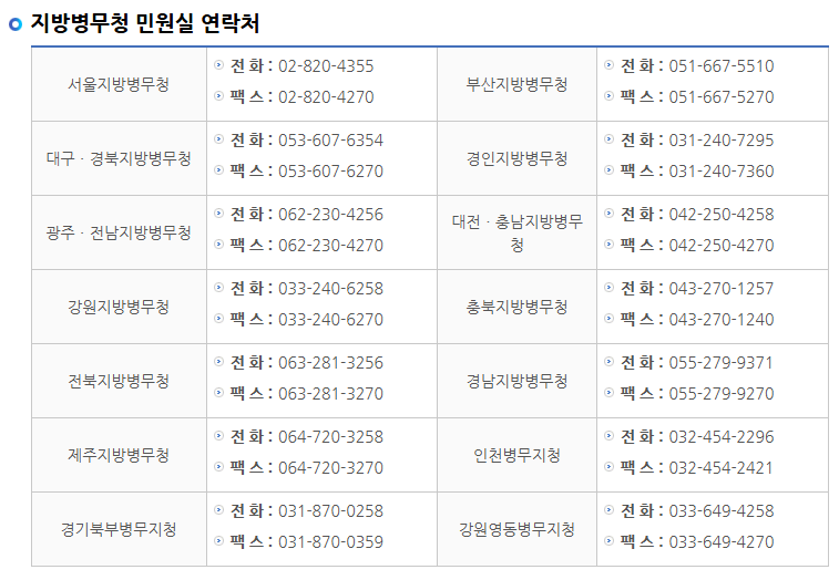 - 방문 가능 기관: 전국 지방병무청 및 본인이 전역한 군부대