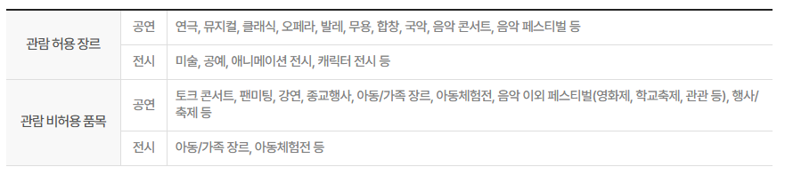 - 지역 문화재단 할인: 지방자치단체에서 운영하는 공연장 할인과 함께 사용 가능