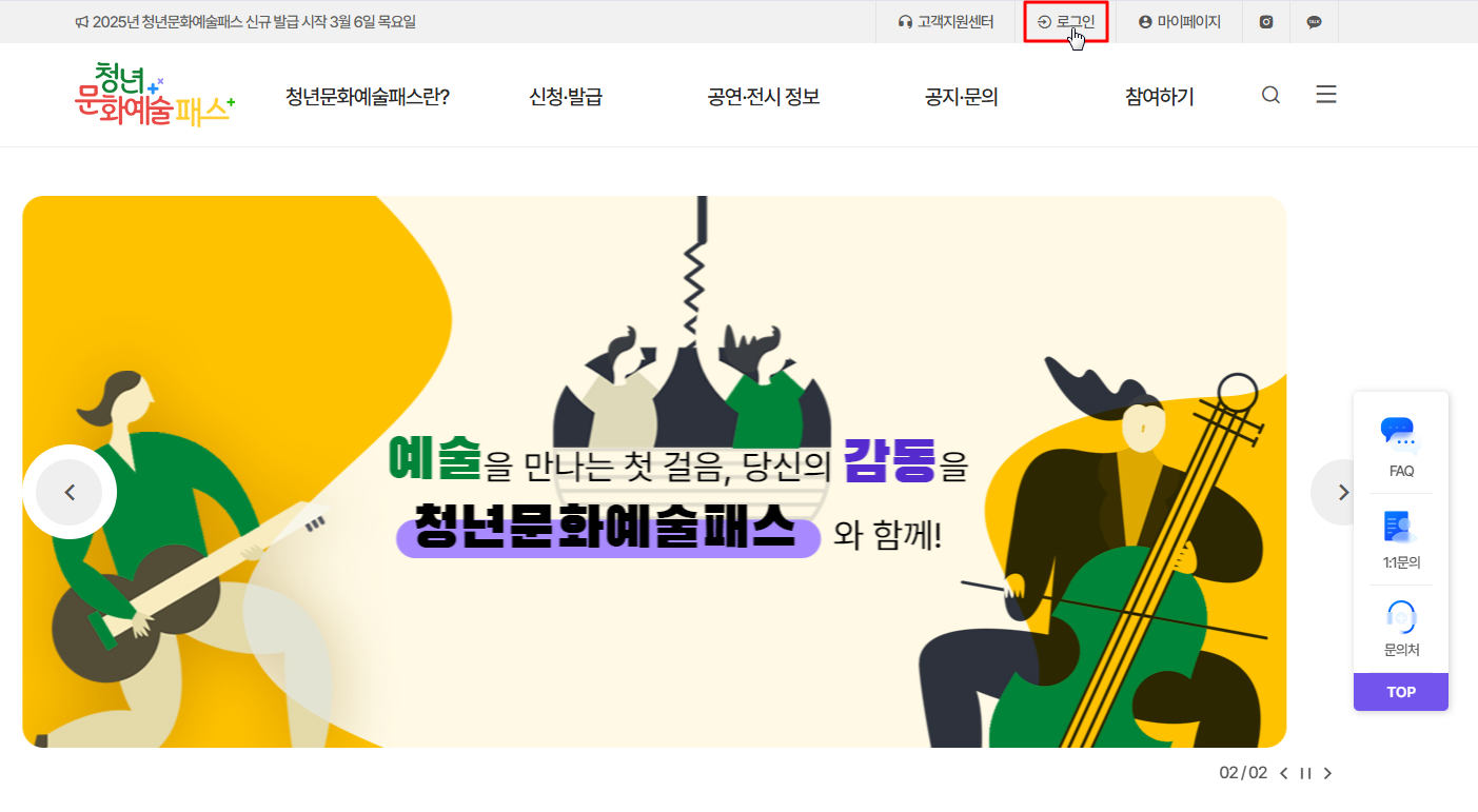 이제 청년문화예술패스를 활용해 더 많은 문화 경험을 쌓아보세요! 공연과 전시를 즐기면서 문화적 감각을 키우고, 다양한 혜택도 누릴 수 있는 기회를 놓치지 마세요.