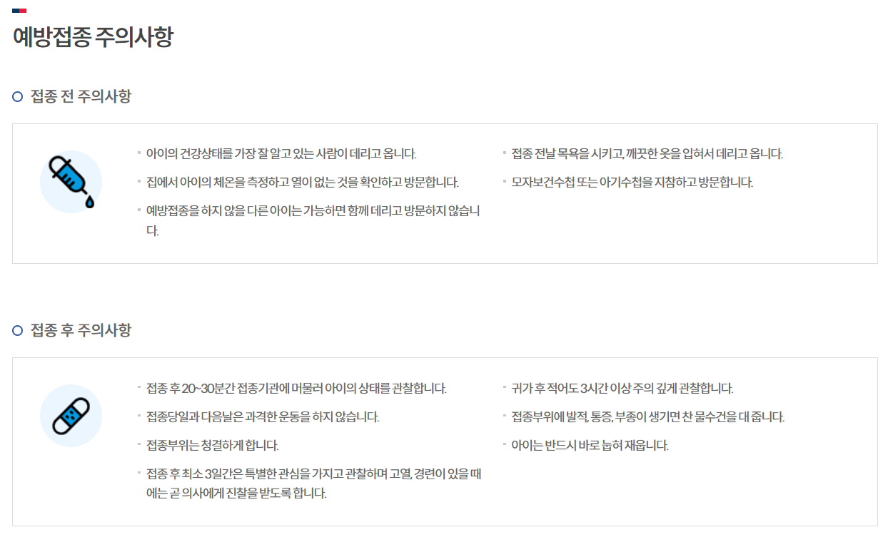 - 접종 당일 격한 운동이나 사우나 피하기 (몸이 무리하지 않도록 주의)
